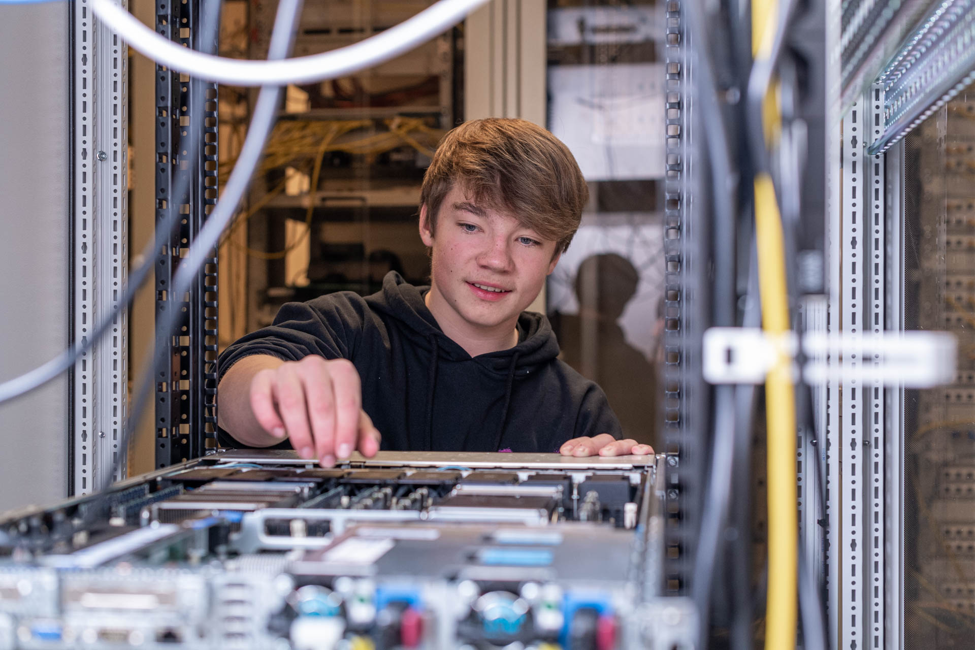 Tauche ein in die Hightech-Welt. Du entdeckst das Coding, Systeme, coole Technologien. Du löst digitale Rätsel, vernetzt die Zukunft und gestaltest Technik, die die Welt bewegt