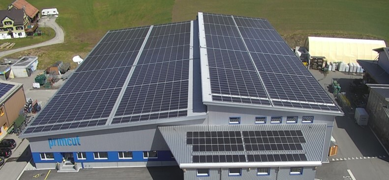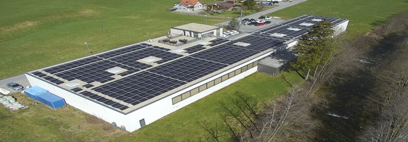 Auf dem Dach der Tisca Urnäsch wurde eine Photovoltaikanlage mit Polykristalline Photovoltaikpanels installiert.
