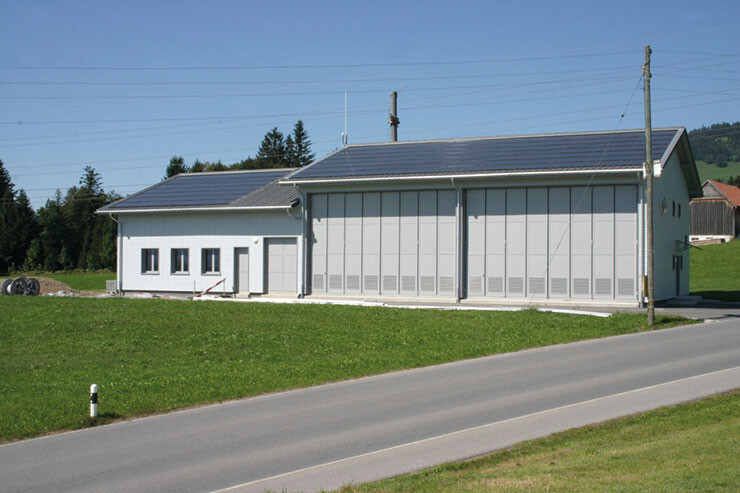 Die Photovoltaikanlage ist auf dem Dach der Einstellhalle in Gais montiert.