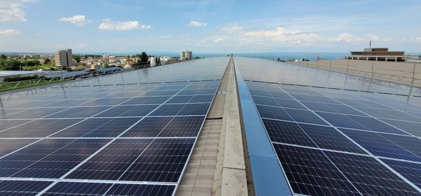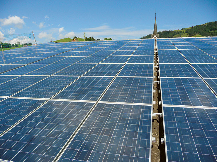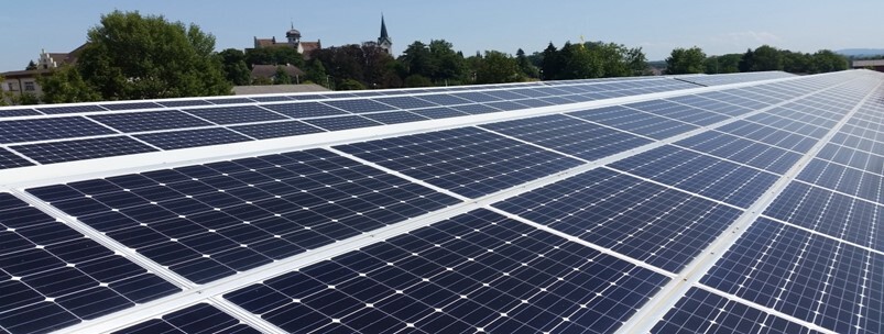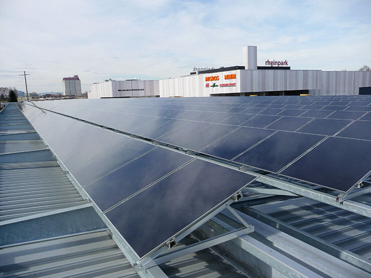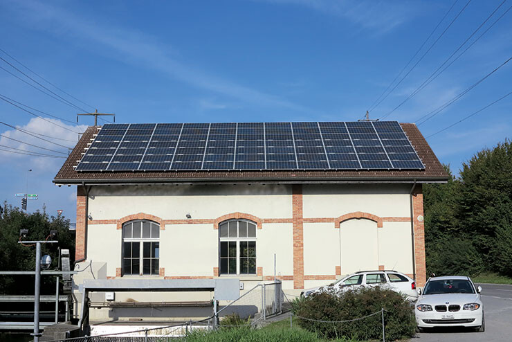 Auf der Markthalle in Sargans ist eine Photovoltaikanlage mit monokristallinen Panels installiert.