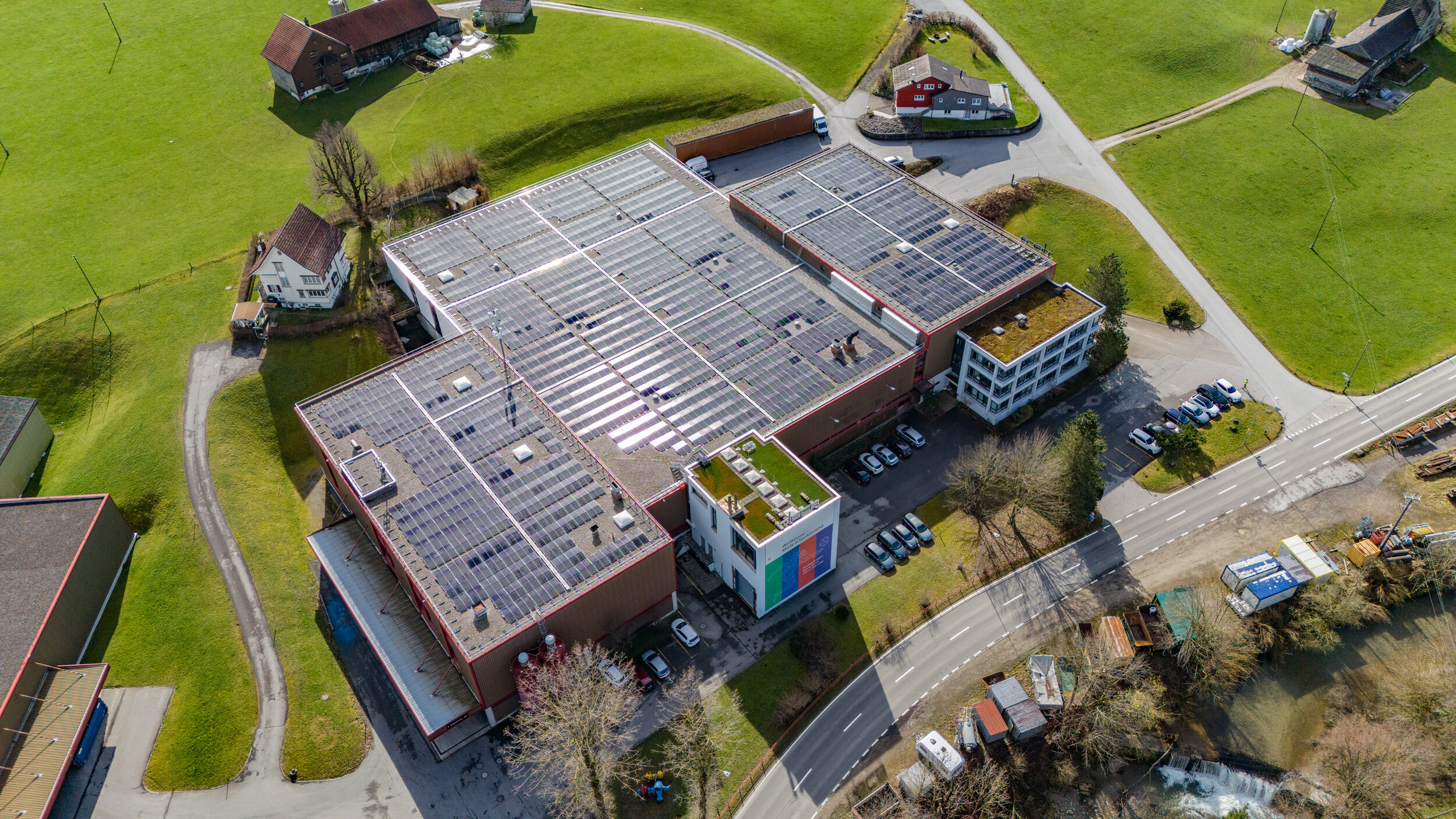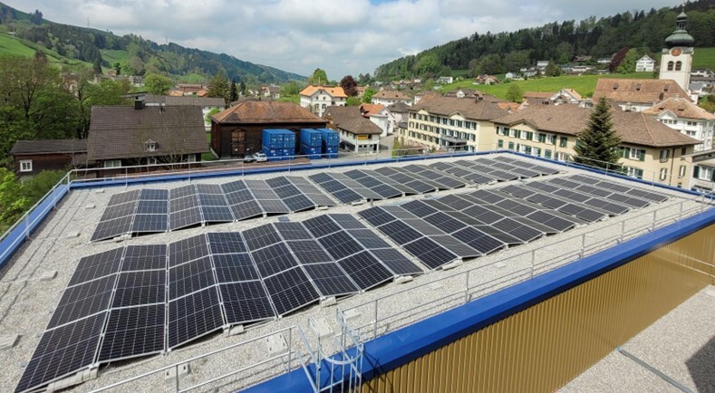 Die Anlage besteht aus einer Ost-West Flachdach PVA mit 862kWp und eine Fassadenanlage mit 65kWp. Mit 927kWp ist es die größte PV-Anlage im Kanton Appenzell Ausserrhoden die 2023 in Betrieb ging. Die Produzierte Energie wird zu einem wesentlichen Teil für die Eigenversorgung genutzt. Die Fassadenanlage liefert zusätzlich im Winter, bei tiefem Sonnenstand, bedarfsgerechte Energie.